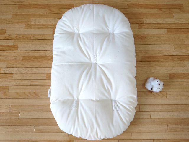 ※こちらの商品は自然素材を使った綿布団のため、ご家庭の洗濯機やコインランドリーでのお洗濯は避けてください。母親の匂いが安心効果につながるため、基本的には天日干しがお勧めです。洗濯される場合は生地や中綿が傷まないよう、優しく手洗いをし、十分に自然乾燥を行ってください。