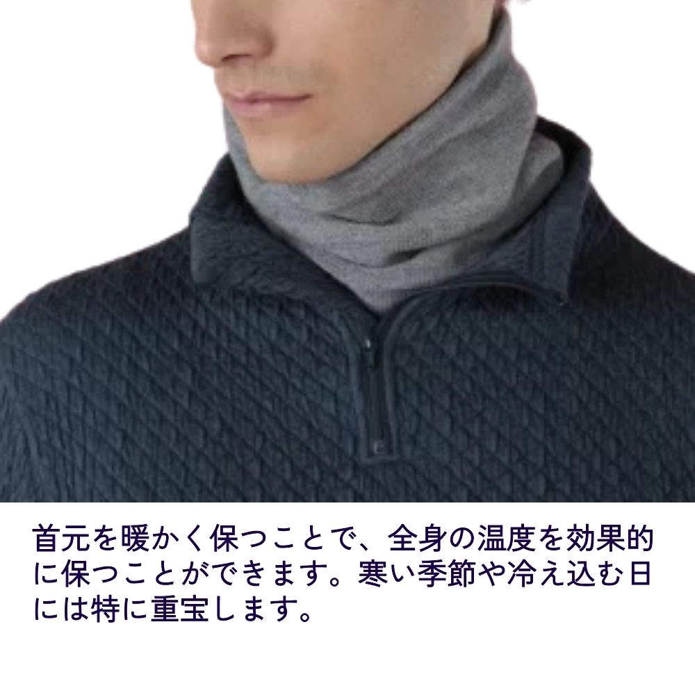 高い保温性: 特殊素材が体温を逃さず、寒い日でもしっかりと首元を保温します。