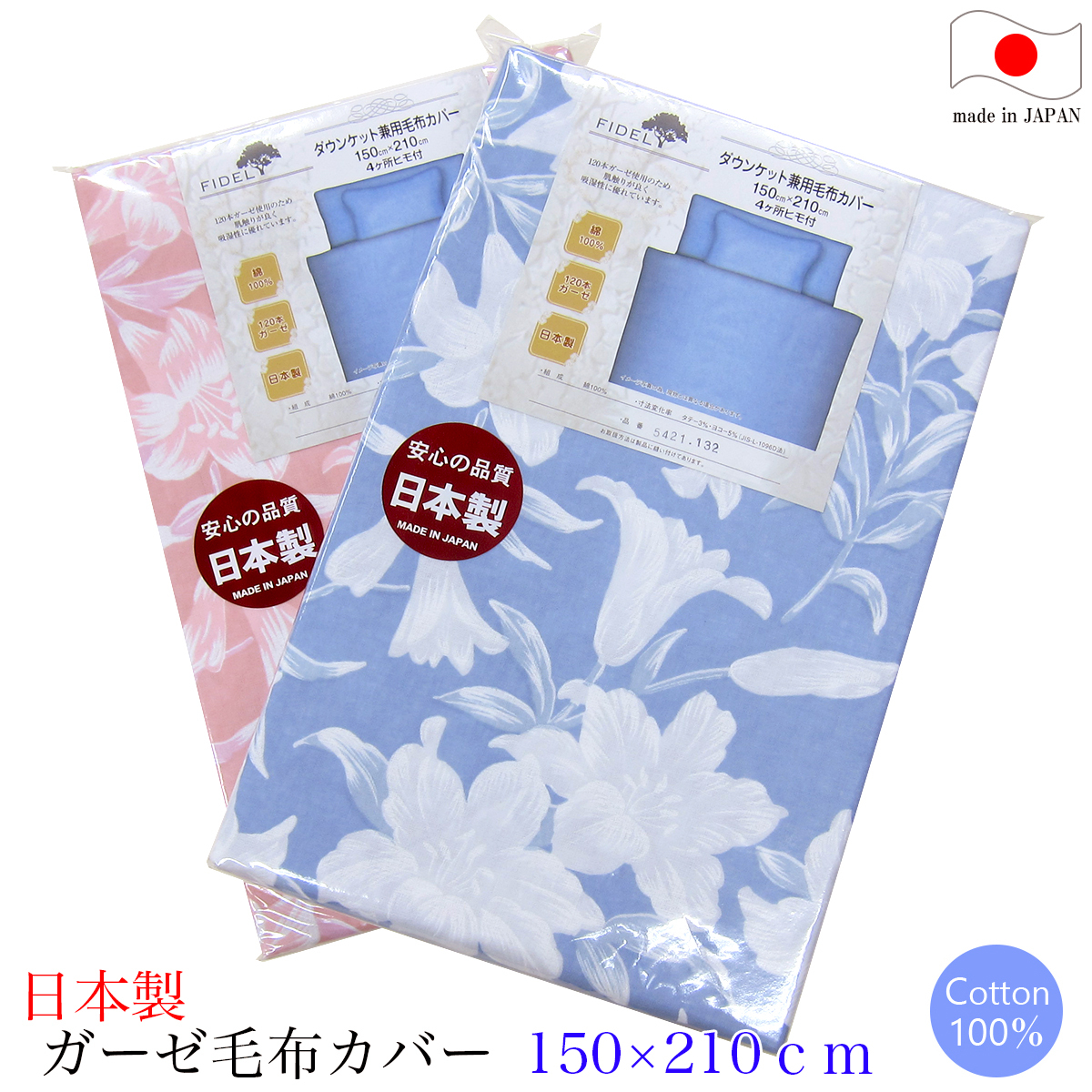 ガーゼ毛布カバー ( 150×210cm ) ユリ 日本製