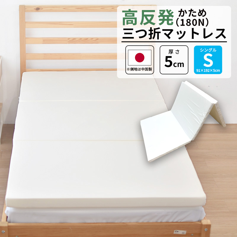 三つ折りマットレス 日本製 シングル 硬質マットレス アンダーマットレス 寝心地改善に コンパクト 約91×192×5cm ウレタンフォーム 3つ折 三折