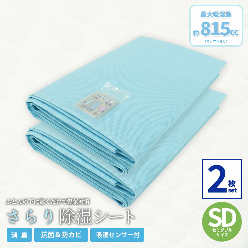 さらりと快適 除湿シート 2枚組 セミダブルサイズ 湿気対策 防カビ 防臭 抗菌 結露対策 寝汗 吸湿 センサー付き 除湿パッド セミダブル 110×180cm [2枚セット]
