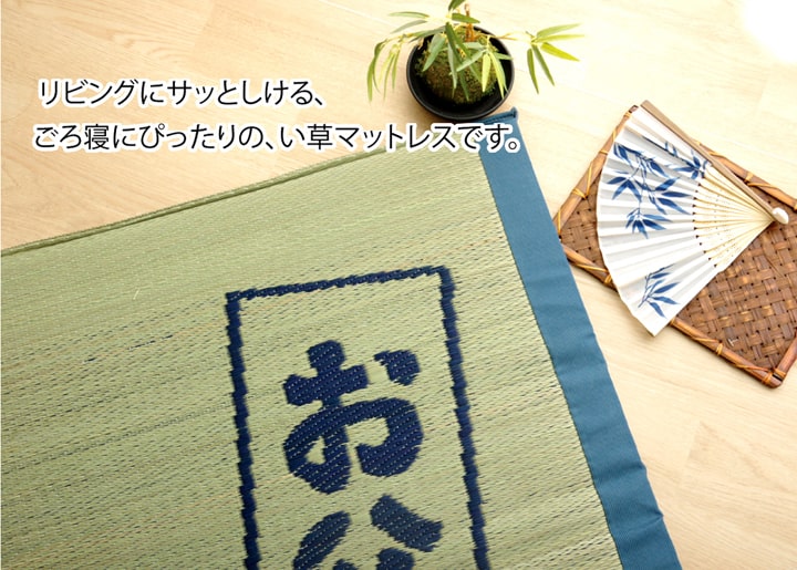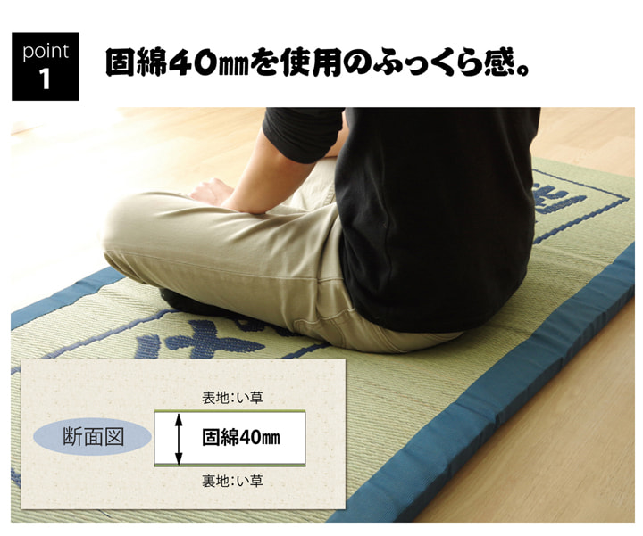 | 側地=い草※普通織 中材=固わた40mm ヘリ=綿100%(返し二方) |