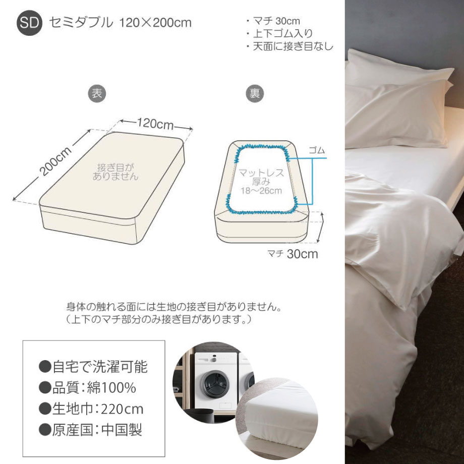 | 綿100%サテン織り生地 エジプト綿 GIZA86 (超長綿) 上下ゴム入り 30cmマチ付き(厚み18~26cmのマットレスに対応) |