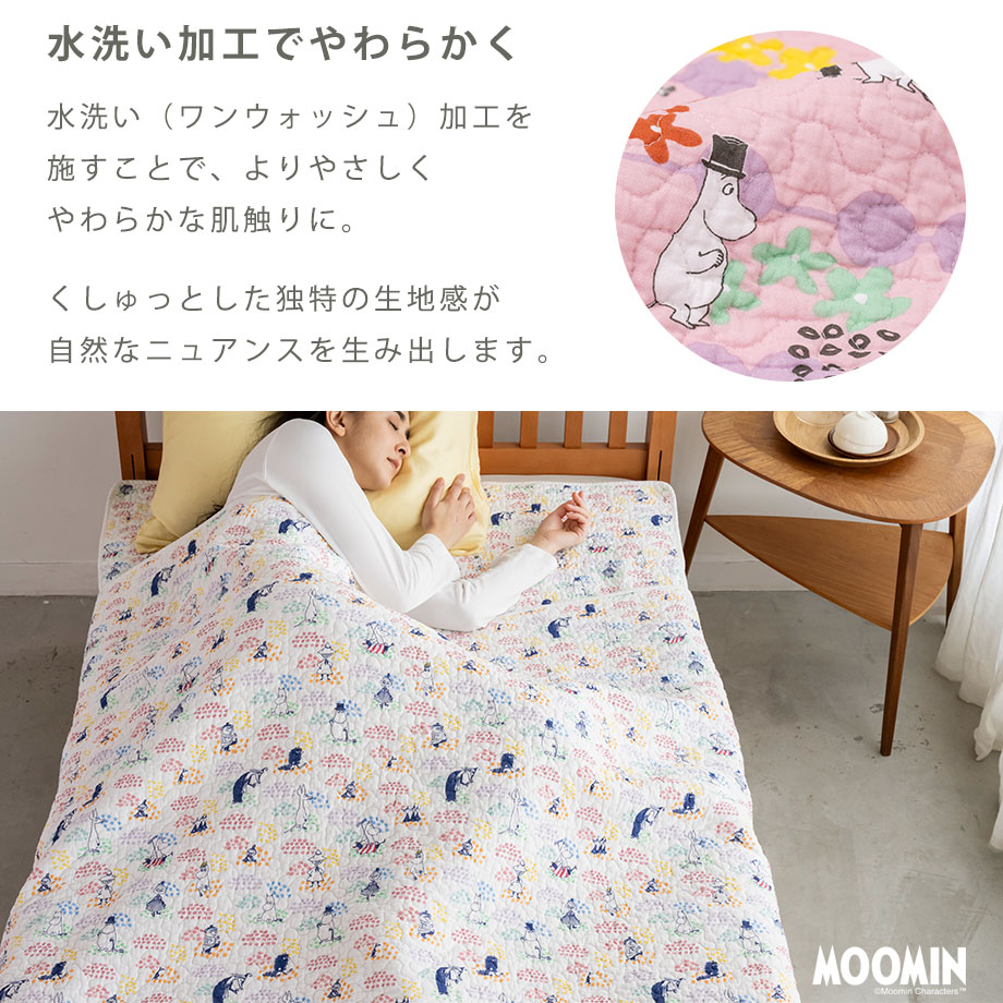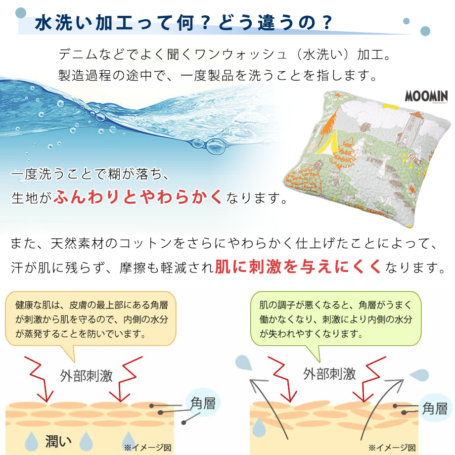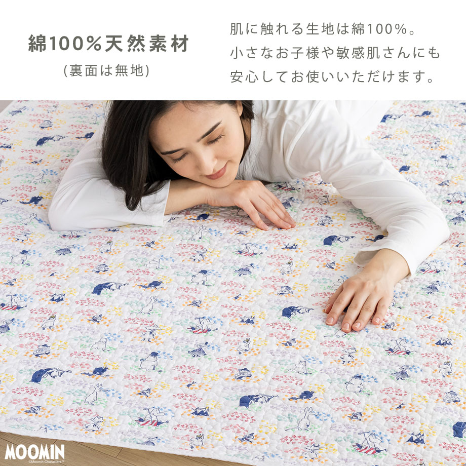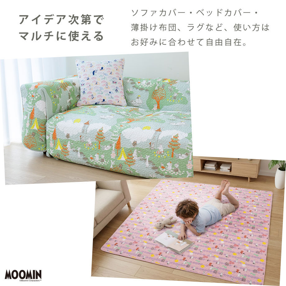| ムーミン谷を可愛らしいカラーで表現した水洗いマルチカバーです。 ベッドカバーやソファーカバー、ラグなど幅広くお使いいただけます。 吸水性に優れた綿100%を生地の両面に使用。 キルトをかけた水洗い加工をすることで、綿本来のやわらかさが増して肌になじみます。 また、細かいキルティング加工を施すことで、より一層お肌に沿うなめらかな肌触りに。 |