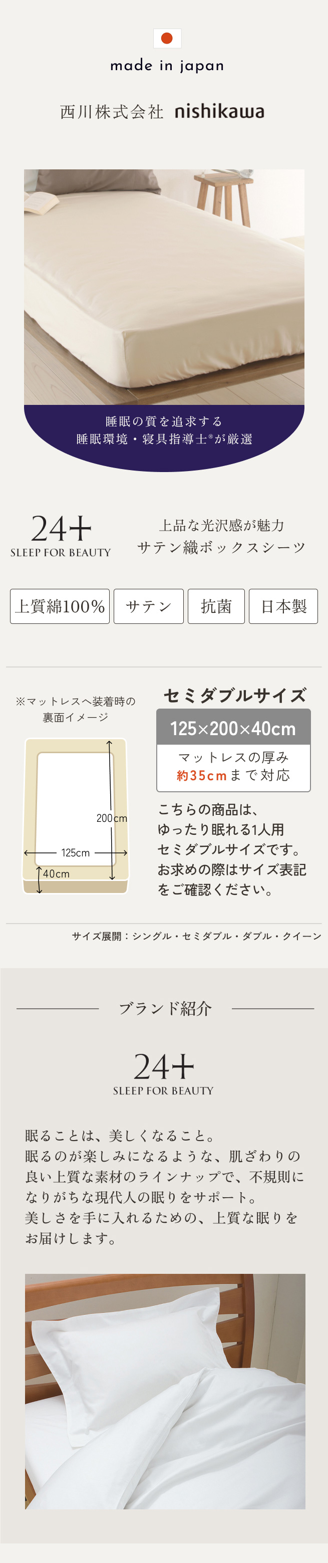 ◆商品名:西川 ベッドフィッティパックシーツ/セミダブル/日本製/24+ボックスシーツ/TFP-00SD/200cm用