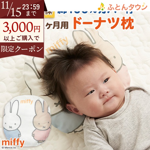 ベビー枕 ドーナツ枕 ミッフィー 西川 枕 まくら ベビー用 赤ちゃん 4ヶ月〜12ヶ月 お医者さん推薦 向き癖 絶壁防止 miffy 綿100% カバー付 出産祝い 出産