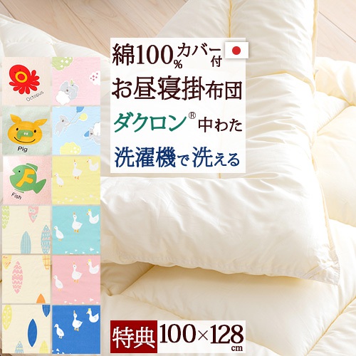 ◆商品名:【お昼寝布団 掛け布団 日本製】綿100%のカバー付き!保育園に!洗濯機で洗えて清潔!洗える中綿使用!合繊お昼寝掛け布団『100×128』+綿100%カバー付(あひる/リーフ/こあら/えいご)