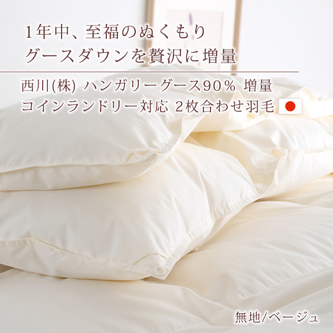 羽毛布団 2枚合わせ 西川 セミダブル グース 増量1.4kg ハンガリー産グース90% DP400 軽量生地 洗える コインランドリー対応 日本製 オールシーズン 2枚合