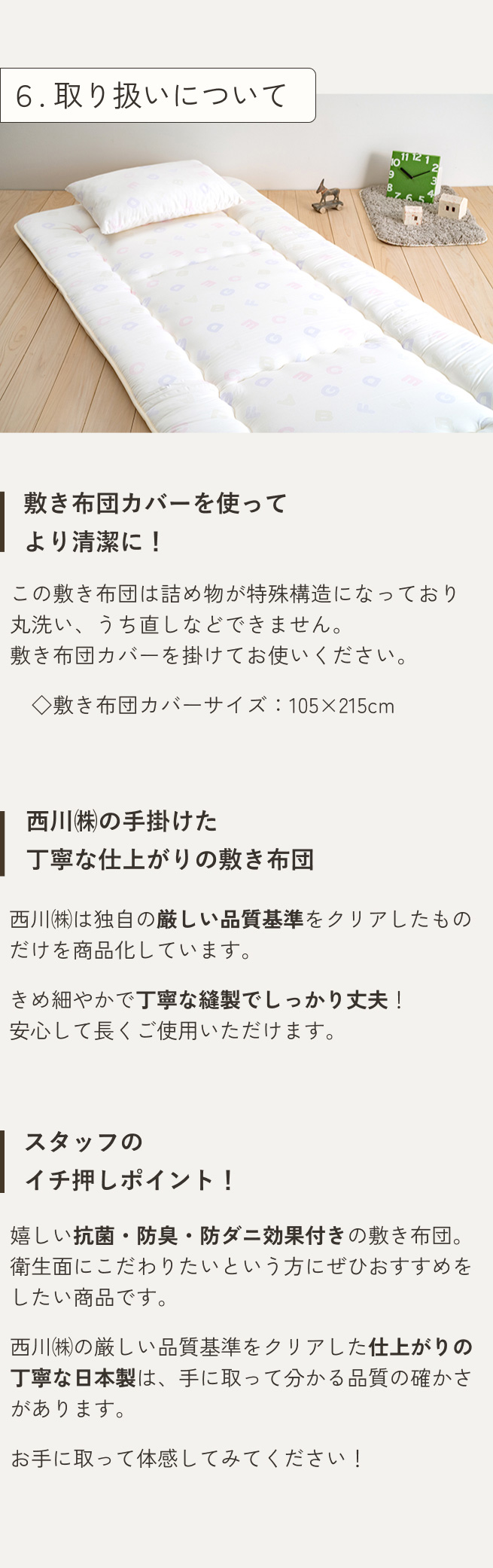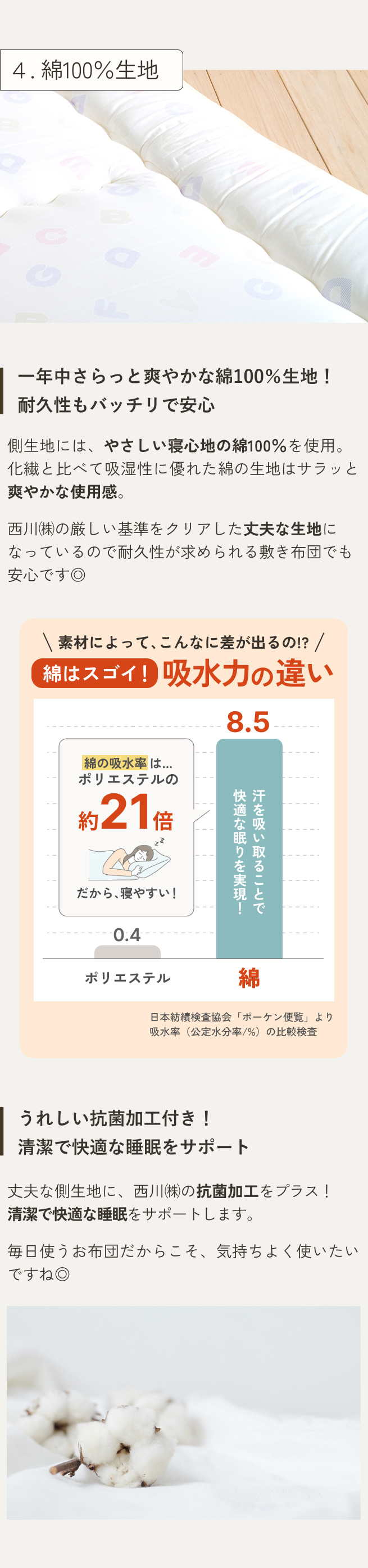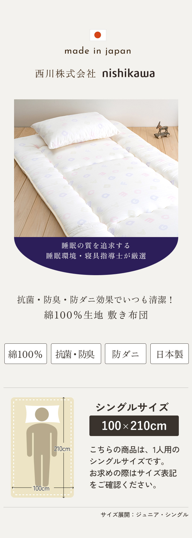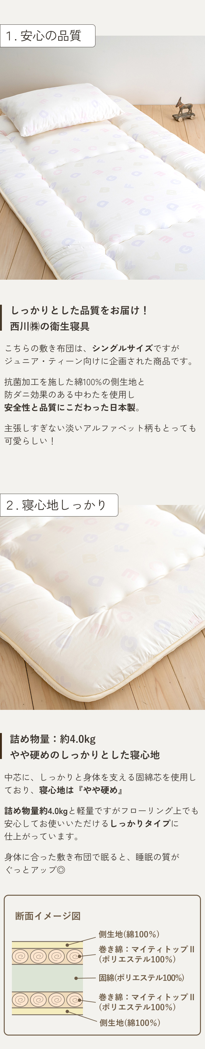 ◆商品名:敷布団 シングル 日本製 西川産業 防ダニ 敷き布団 抗菌防臭 敷布団