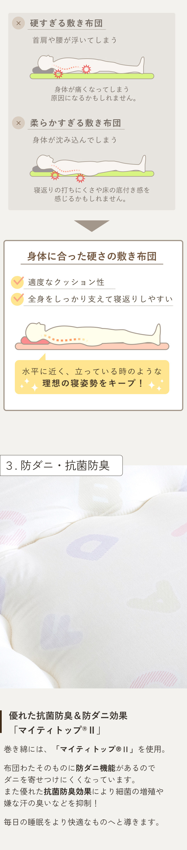 敷布団 シングル 西川 敷き布団 日本製 防ダニ 抗菌防臭 高い安全性 マイティトップ2 側生地 綿100% 東京西川 シングルロングサイズ
