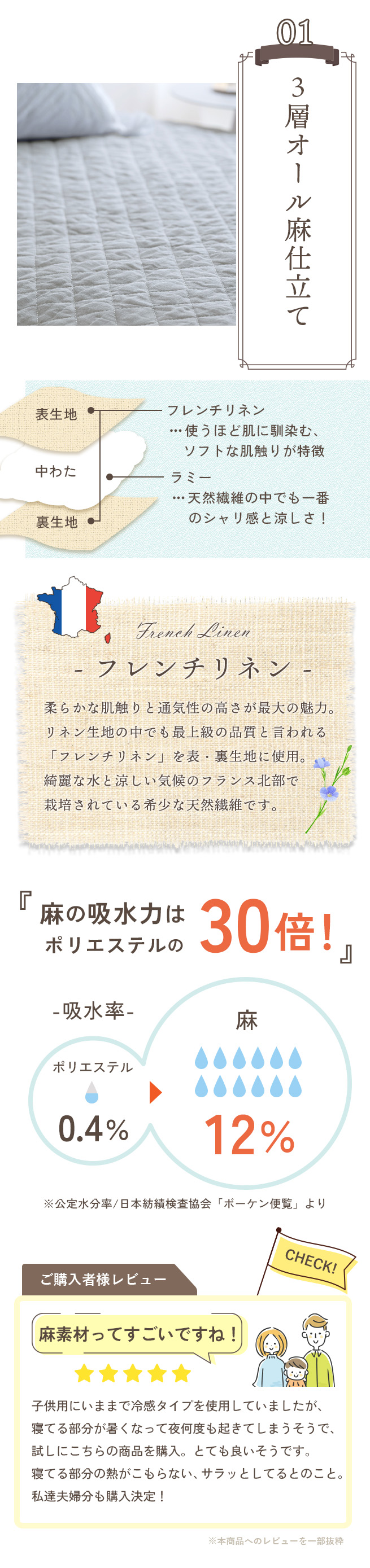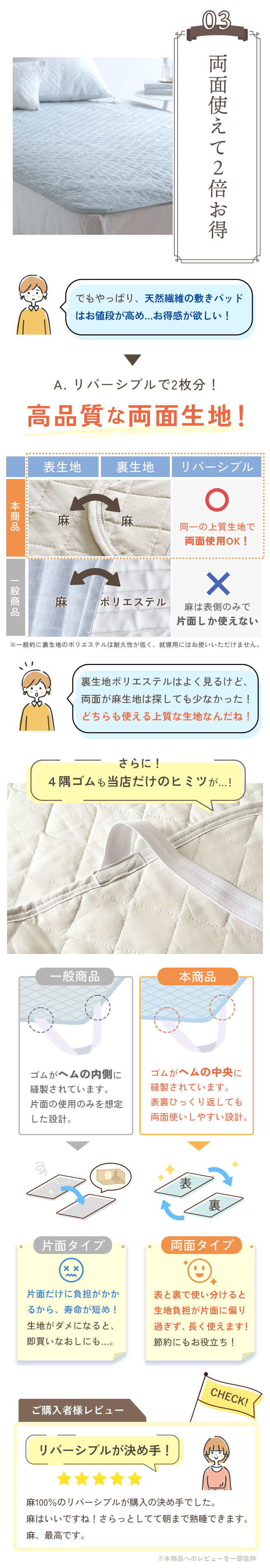 敷きパッド シングル 麻100 冷感 オール麻 フランスリネン 春 秋 夏用 涼感 麻100% 両面 リバーシブル 詰め物 ひんやり 天然素材 リバーシブル