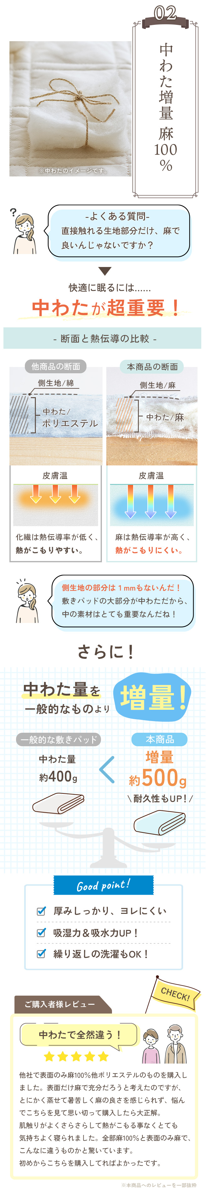 表生地綿100% 詰め物量0.6kgから、麻100% 詰め物量0.5kgへ変更になりました。