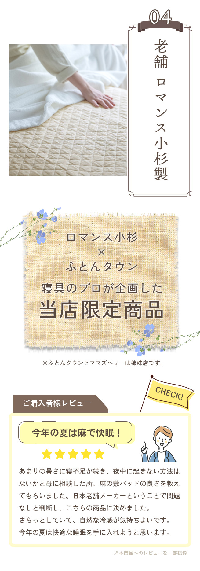 ◆商品名:敷きパッド シングル ロマンス小杉 夏用 麻100% 敷パッド シングルサイズ