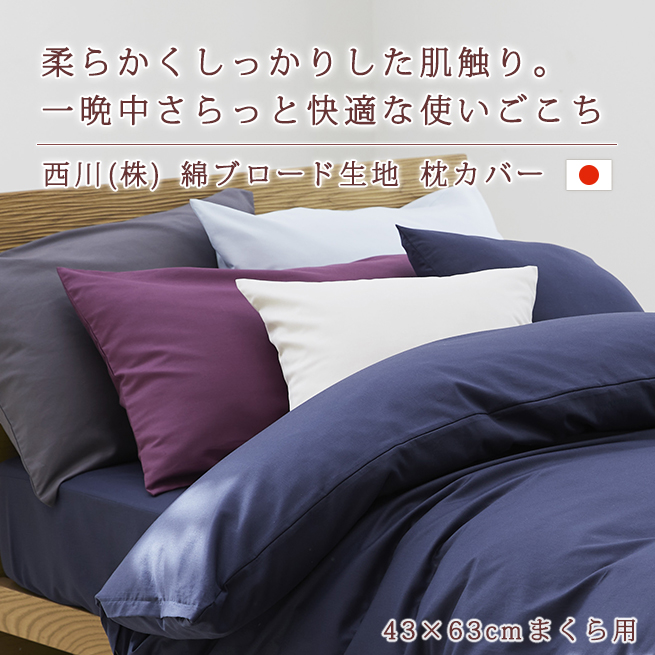 枕カバー 西川 ピロケース 日本製 45×90cm 43×63cm用 綿ブロード 東京西川 西川産業 大人サイズ まくらカバー