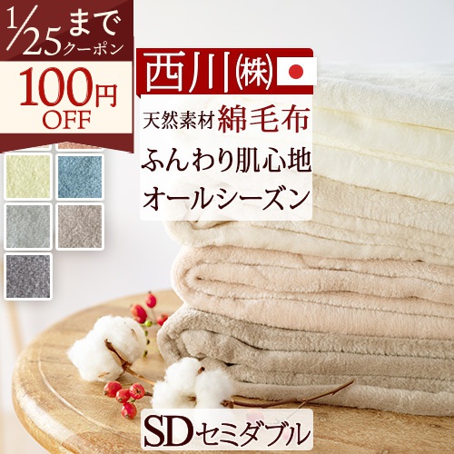 綿毛布 セミダブル 日本製 東京西川 西川産業 コットンブランケット 毛羽部分:綿100% 泉大津 セミダブルサイズ