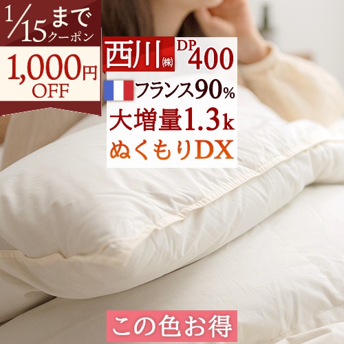 この色だけお得 数量限定 羽毛布団 シングル 西川 日本製 大増量1.3kg フランス産 ホワイトダウン90% DP400 掛け布団