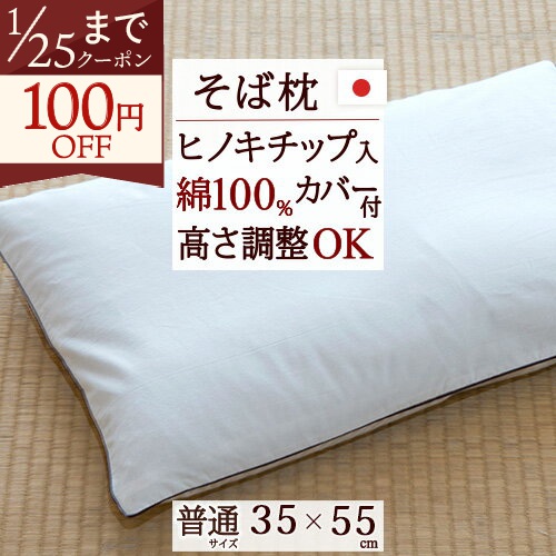 ジンペット そば枕 日本製 そばがら枕 35×55cm 送料無料 土佐ヒノキチップ 枕 ピロー まくら 綿100% 高さ調節 そば殻枕