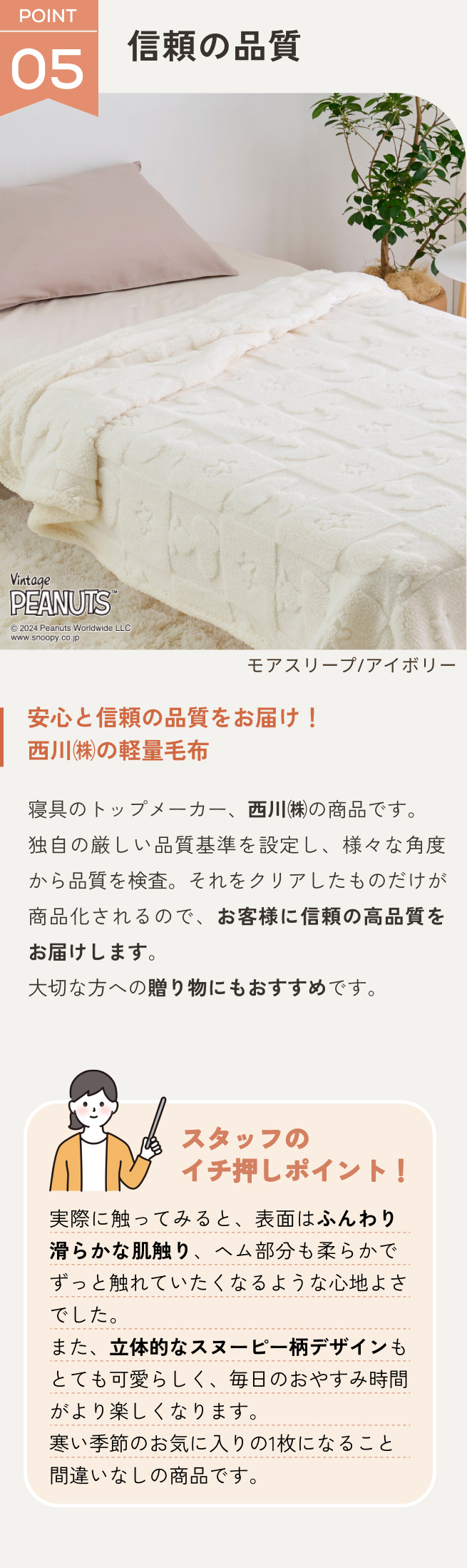 スヌーピー 毛布 シングル 軽量 西川 ふっくら柔らか ボア調 ピーナッツ snoopy 洗える 軽い毛布 プレゼント ギフト お祝い 春秋冬