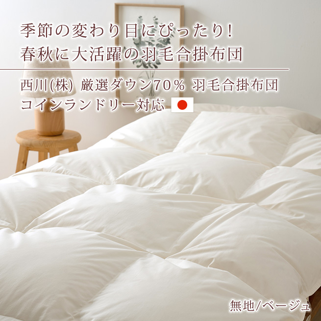 西川 羽毛布団 合掛け布団 シングル 日本製 ホワイトダウン70% 増量 0.7kg羽毛合掛布団 春秋 抗菌 日本製