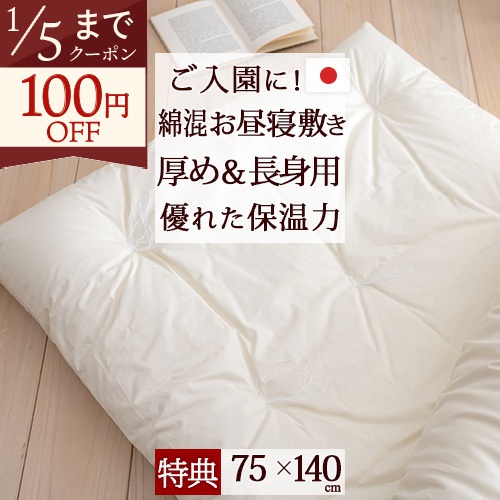 ◆商品名:お昼寝布団・敷き布団・日本製 保育園に 背の高いお子様に ふんわり暖か 綿混お昼寝敷布団長身用『75×140』 お昼寝マット