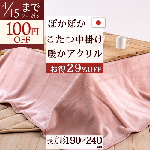 こたつ布団 長方形 日本製 こたつの熱を逃がさずしっかり保温 ジンペット アクリル100% こたつ中掛け毛布 長方形 天板が普通