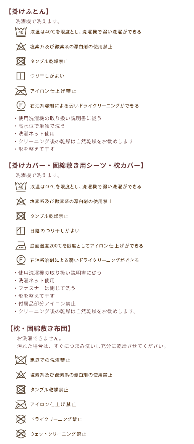 掛けふとん、カバーリング類はお洗濯可能。