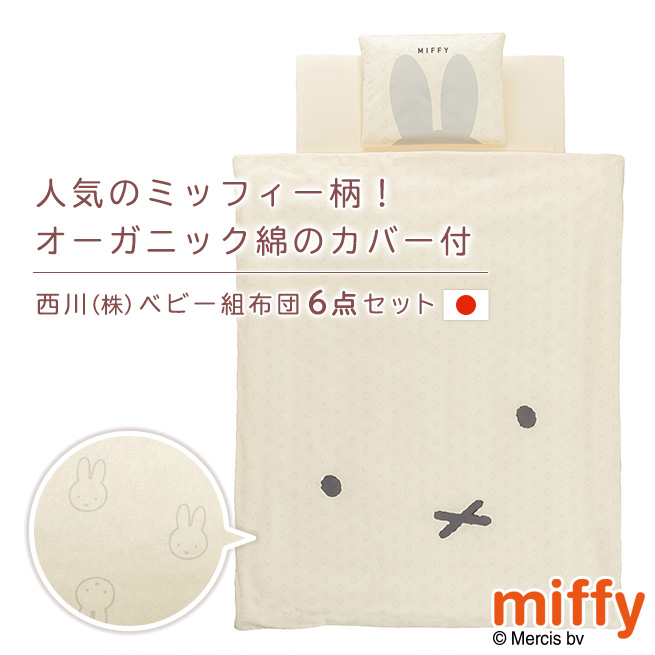 西川 ミッフィー ベビー布団 セット 日本製 組布団 布団セット 合繊 ベビー組布団 6点セット 綿100%カバー ベビー布団 セット ベビーふとん