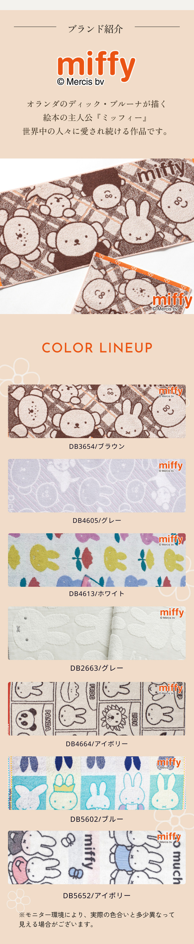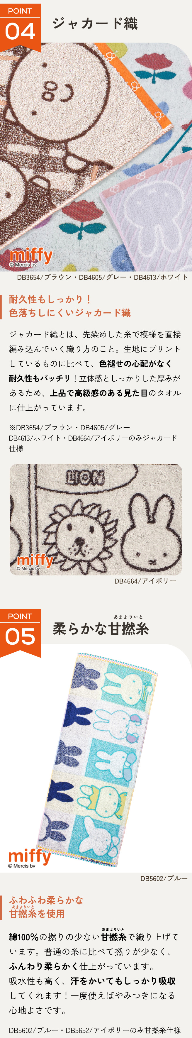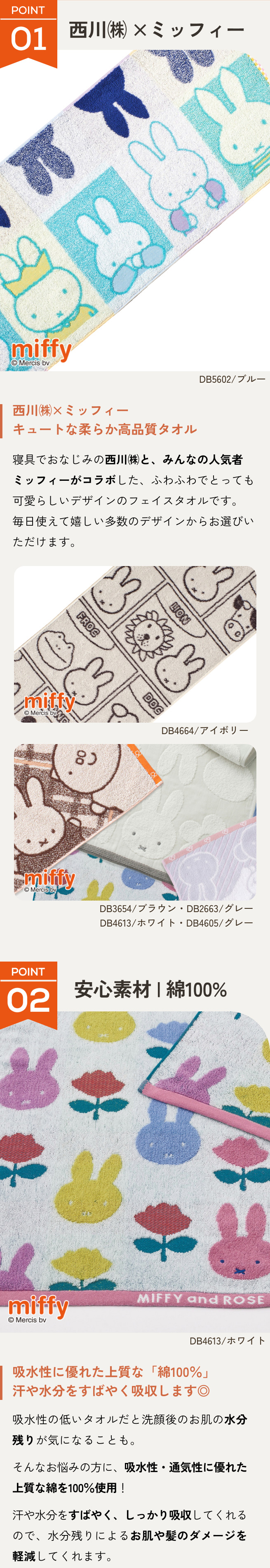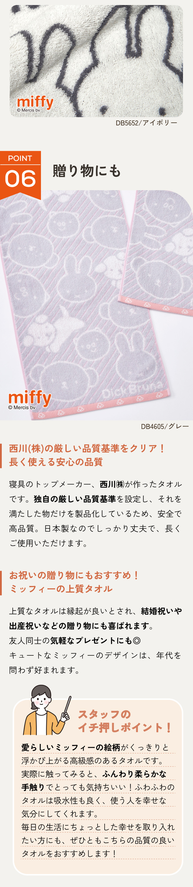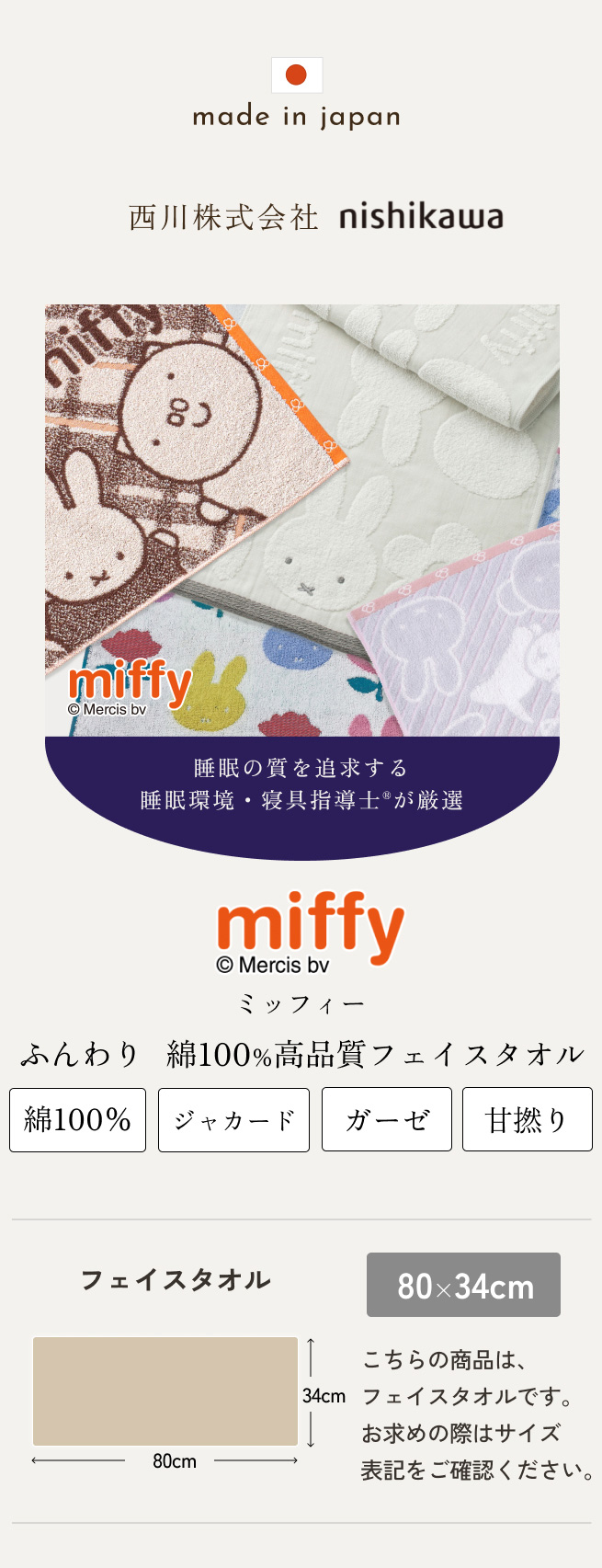 ◆商品名:フェイスタオル 34×80cm 西川 ミッフィー 綿100% miffy