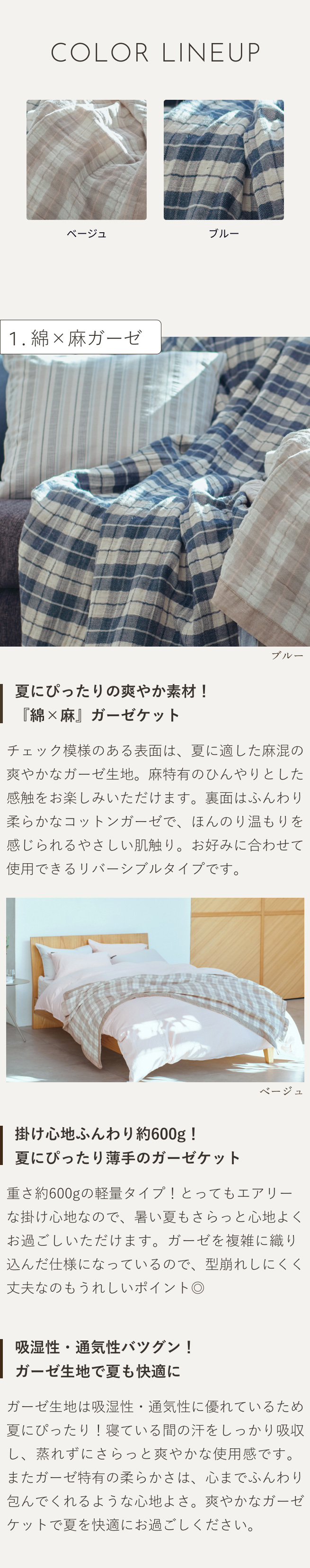 夏にぴったりの麻混ガーゼケット。