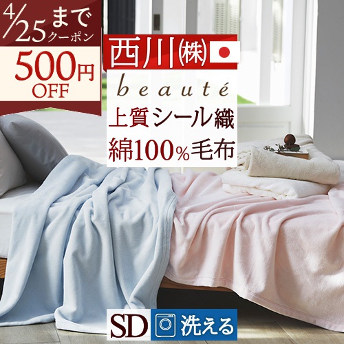 綿毛布 セミダブル 西川 日本製 シール織 綿100% 高野口 ブランケット コットンケット beaute ボーテ 160×210cm オールシーズン セミダブルサイズ