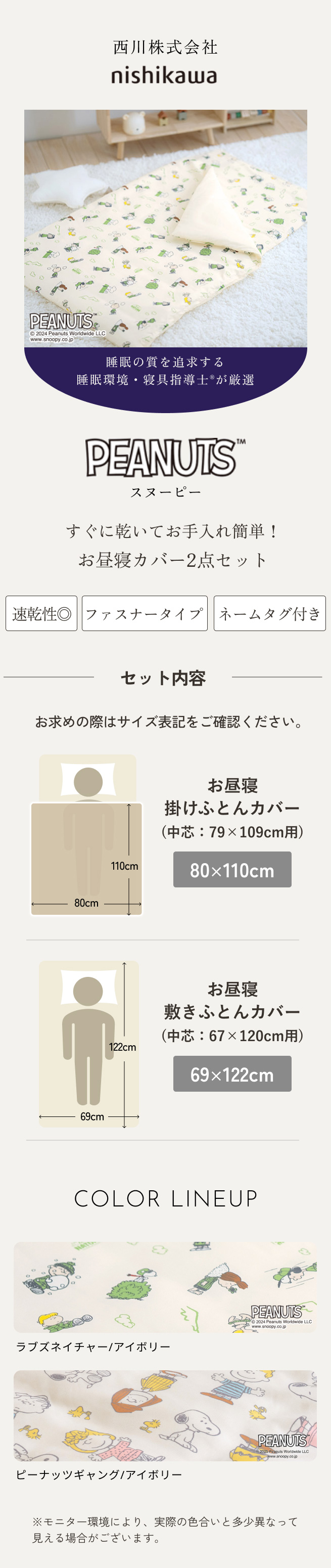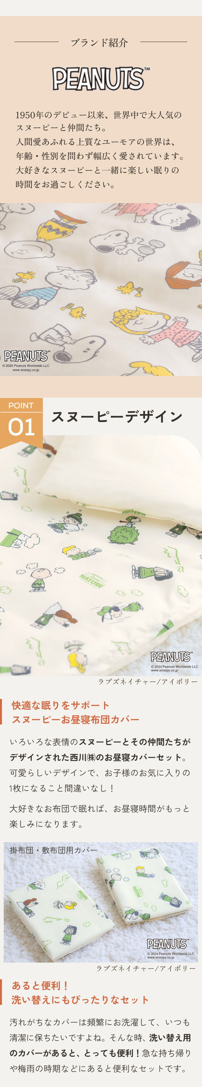 お昼寝布団 カバーセット 2点セット 西川 スヌーピー ピーナッツ 保育園 幼稚園 洗える お昼寝ふとんカバー 掛けカバー 敷きカバー 掛け布団カバー