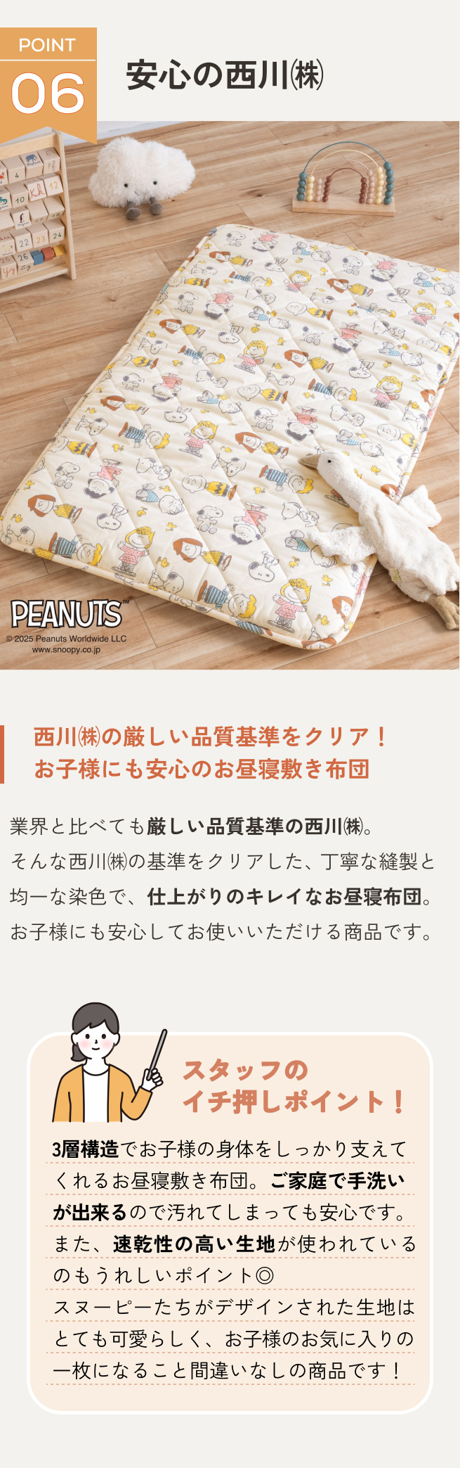 ◆商品名:お昼寝マット 子供 敷き布団 保育園のお昼寝に!西川 合繊お昼寝敷布団 キャラクター 子供