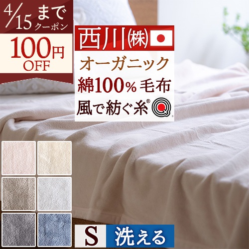 綿毛布 シングル 日本製 西川 オーガニック 綿100% ブランケット 風で紡ぐ糸 コットン 春 秋 冬 無地 洗える ウォッシャブル 抗菌 保湿