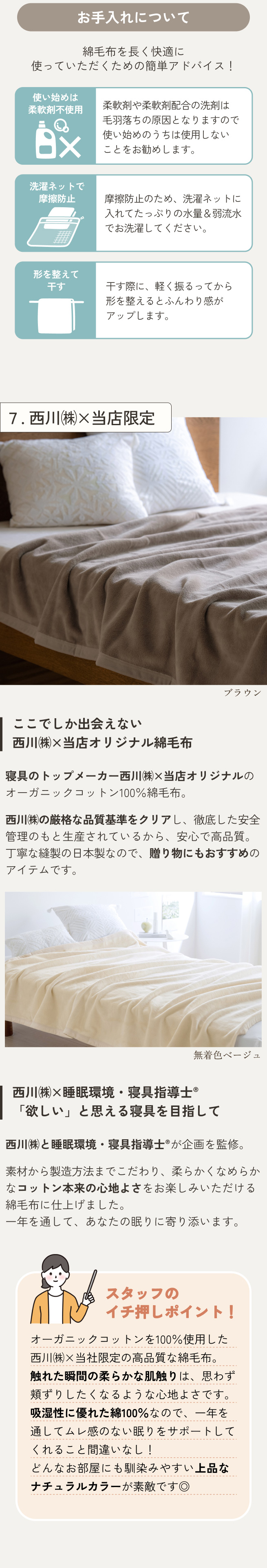 四季を楽しむ西川(株)日本生まれの綿毛布。