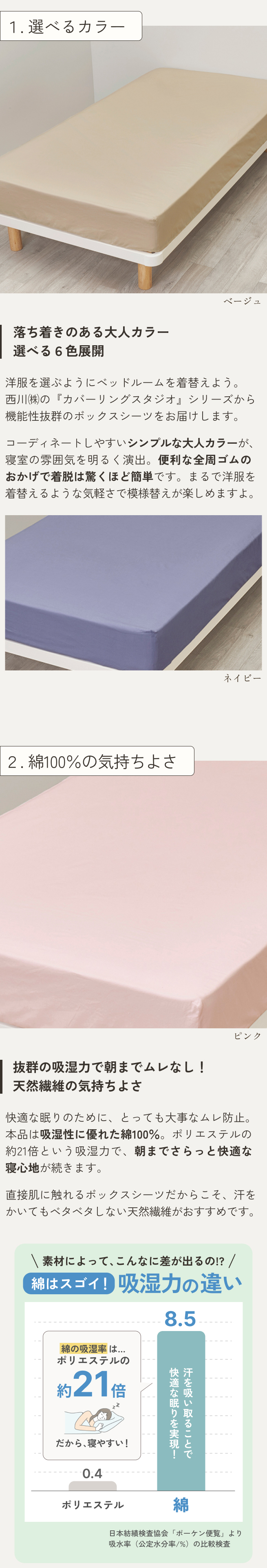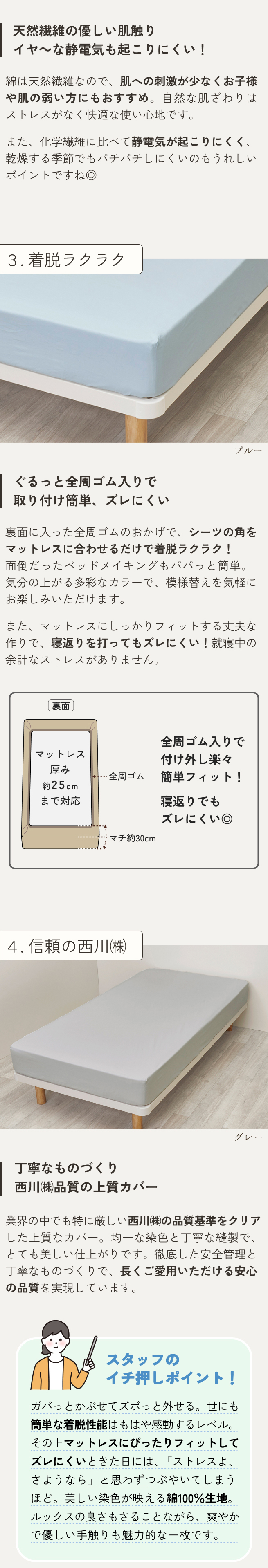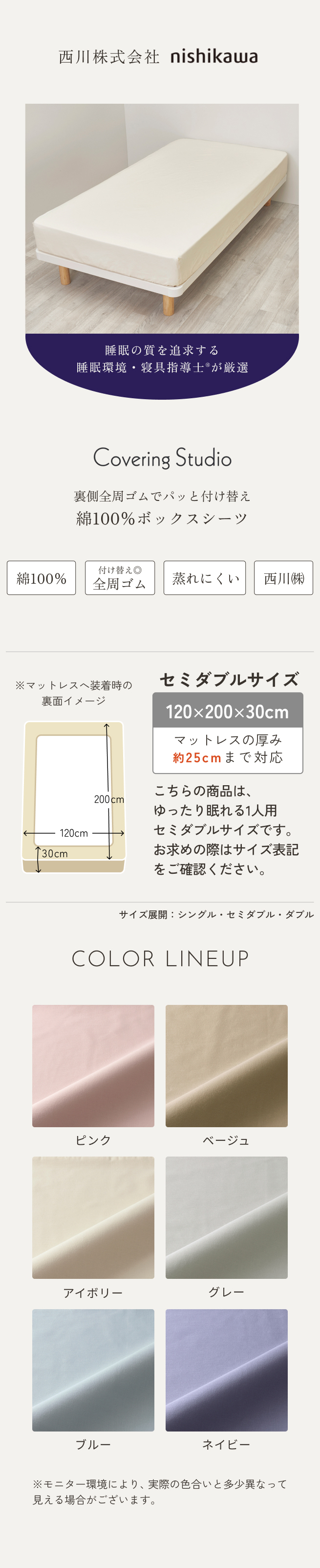 西川 ボックスシーツ セミダブルベッド用シーツ 西川株式会社 カバーリングスタジオ オールシーズン