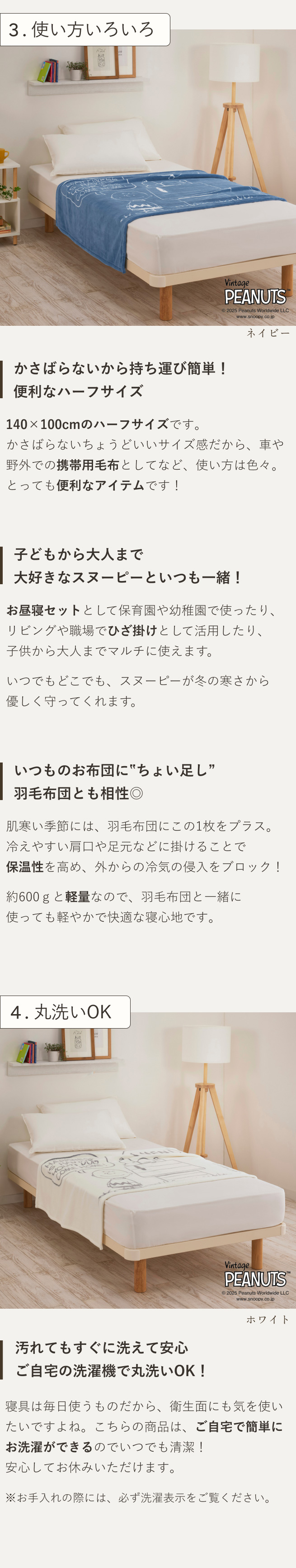 ◆商品名:スヌーピー 綿毛布 ハーフケット ハーフ 140×100cm 綿100% 西川 キャラクター