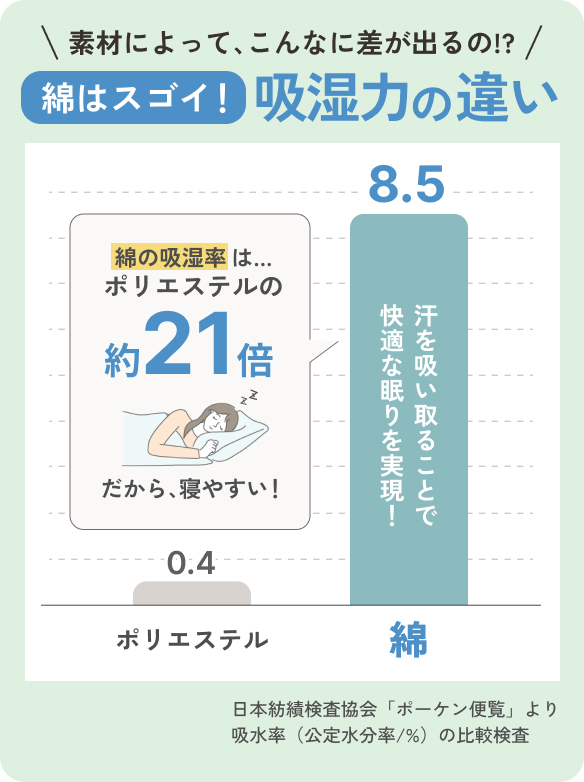 上質なコットン100%生地使用。天然繊維の綿は、吸湿性、通気性に優れ、汗などの水分をしっかり吸収してくれます。一年中さらっと快適な寝心地です。