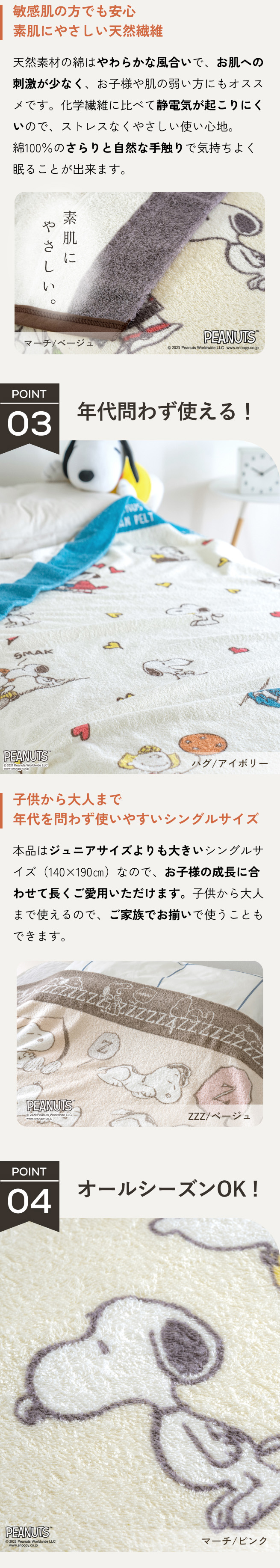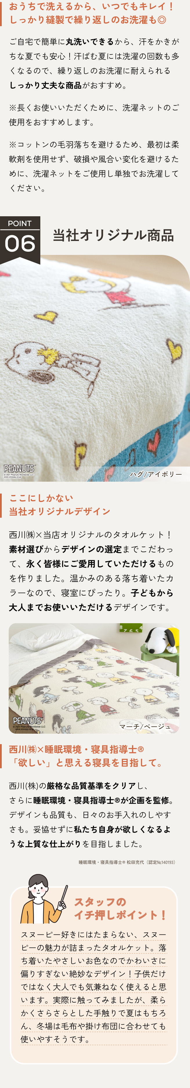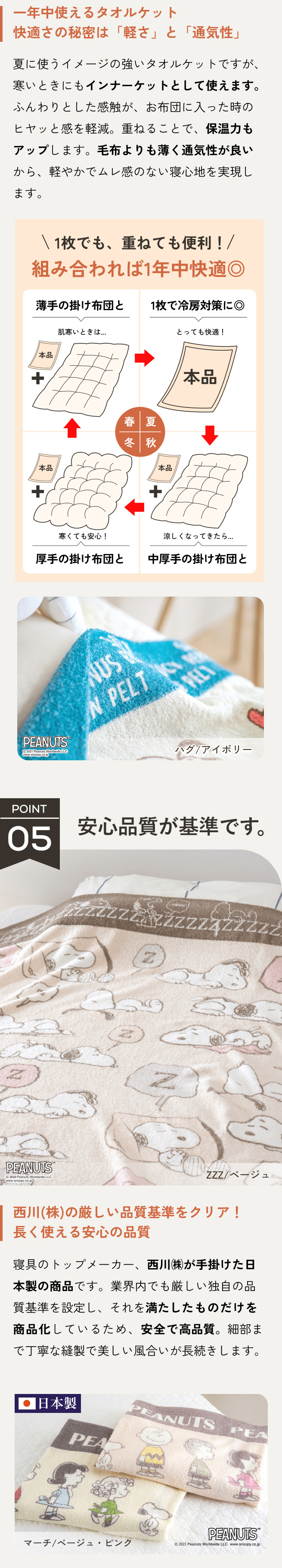 タオルケット シングル スヌーピー 西川 日本製 夏用 綿100% 西川リビング snoopy キャラクター 吸湿 送料無料