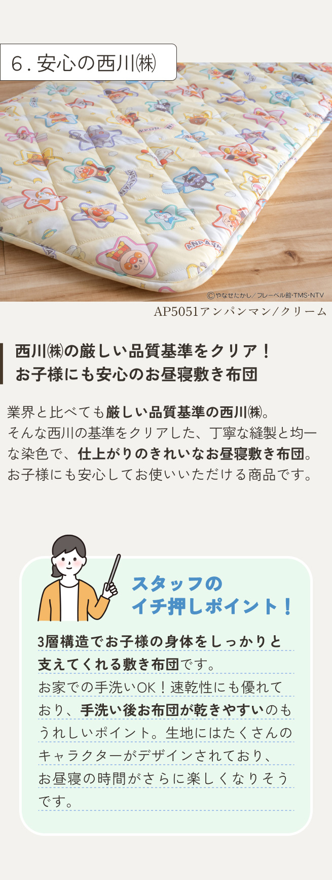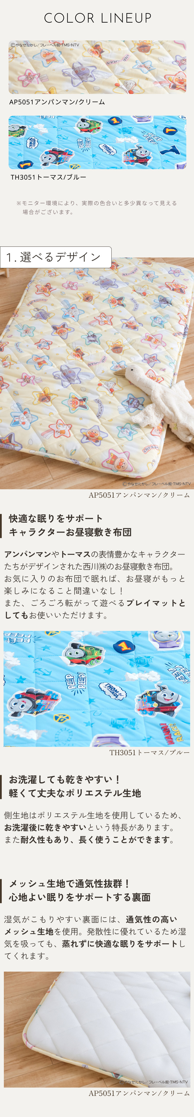 ◆商品名:お昼寝マット 子供 敷き布団 保育園のお昼寝に!西川 合繊お昼寝敷布団 アンパンマン トーマス 子供