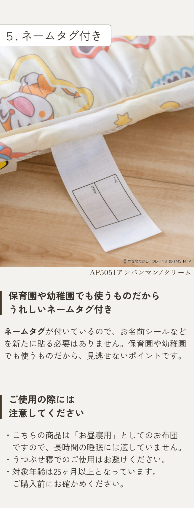 何かと汚れがちなお昼寝ふとん。寝汗やおねしょで汚れても、ご家庭で手洗いできるので清潔に保てます。