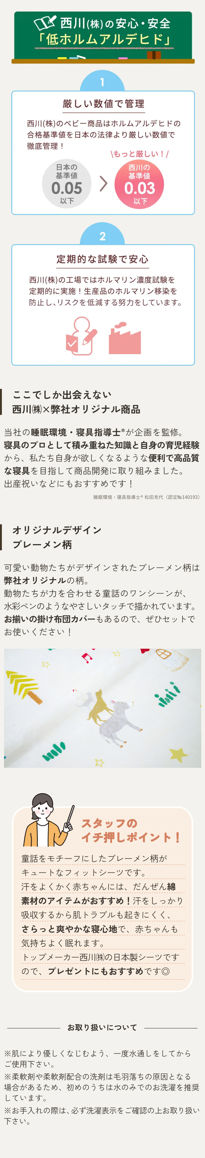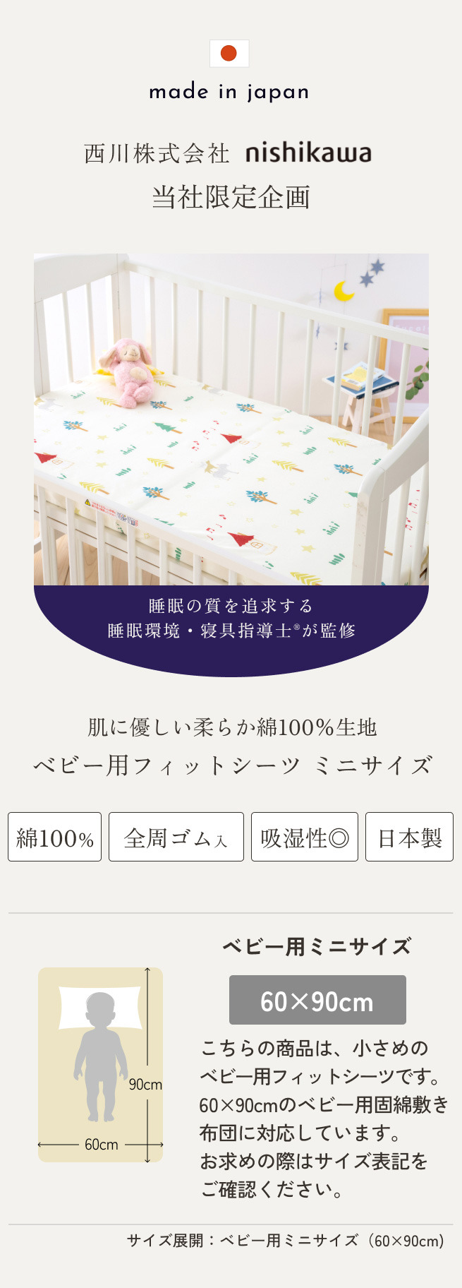 赤ちゃんに安心の西川の日本製