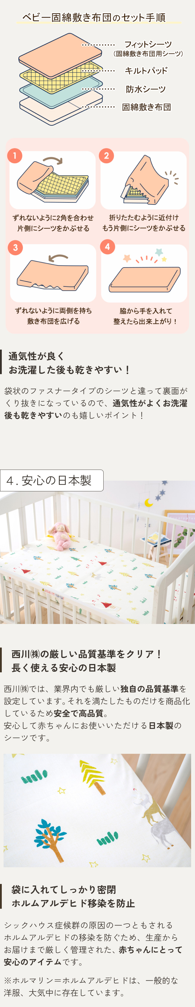 ◆商品名:フィットシーツ 西川 ベビー布団カバー ベビー敷き布団カバー 60×90cm ミニサイズ用