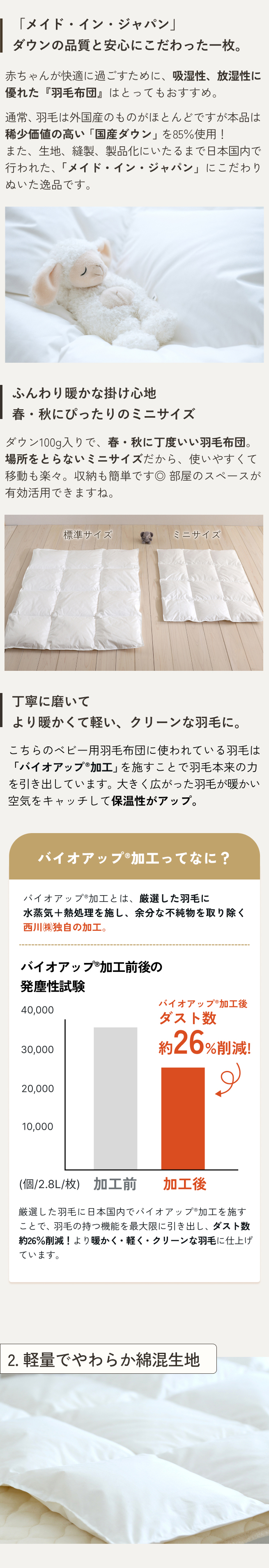 ◆商品名:ベビー布団 ミニ 羽毛布団 西川 掛け布団 赤ちゃん ミニサイズ 日本製