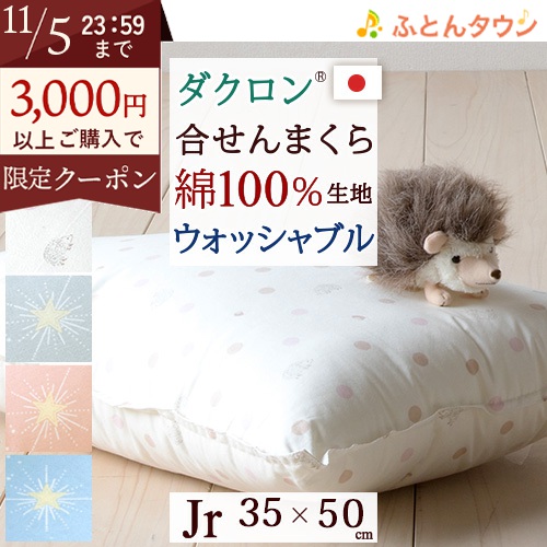 ジュニア布団 枕 日本製 ウォッシャブルタイプ ジュニア合繊まくら35×50cm ハリネズミジュニア ダクロン 中わた使用