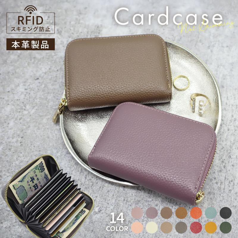 商品:カードケース レディース 本革 大容量 コンパクト 磁気 防止 じゃばら式 カード入れ スキミング防止 スリム レザー