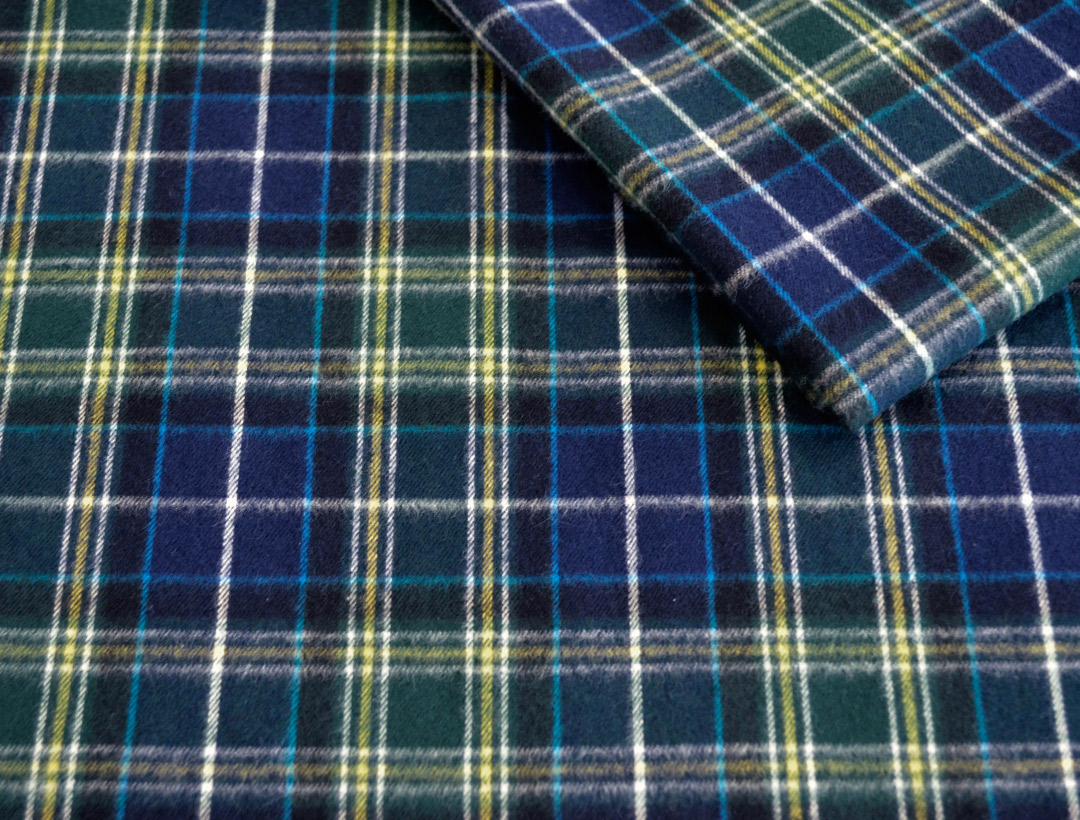 30番双糸を使用した、定番タータンチェックに毛足の長いシャギー起毛加工でウォーム感をプラスしたWinter Cotton素材。