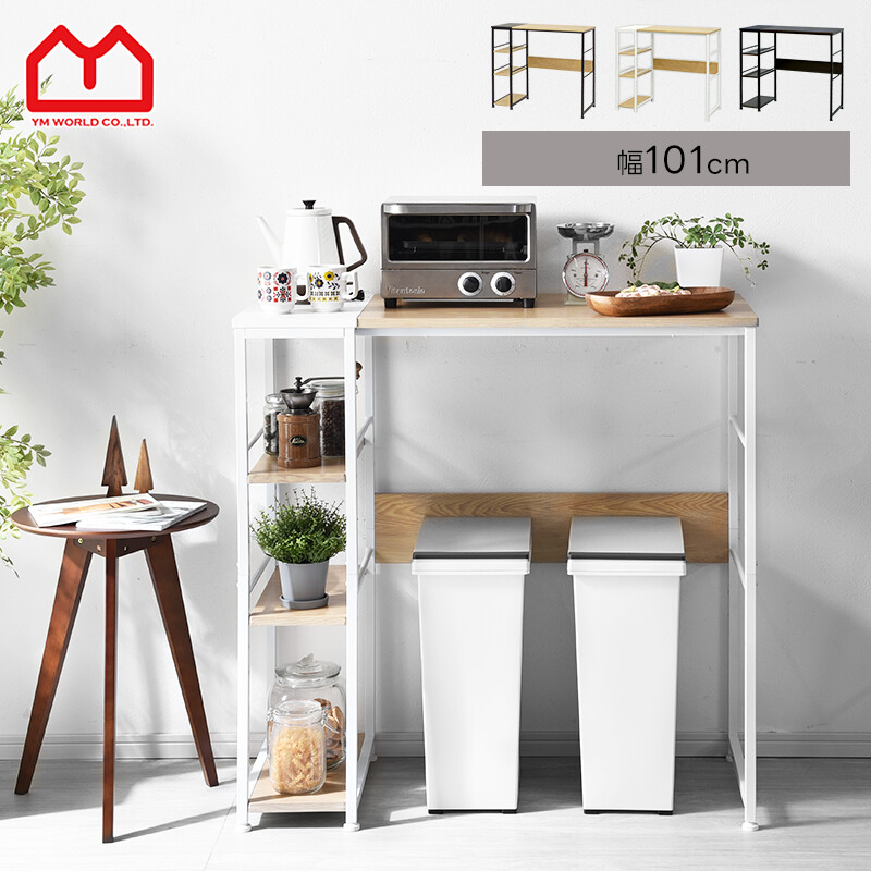 送料無料 キッチンラック ゴミ箱 収納 幅100 スリム 大型レンジ対応 ゴミ箱上ラック キッチンカウンター キッチン収納棚 省スペース ダストボックス キッチンボード カウンター カウンターデスク ゴミ箱ラック ワークデスク オープンカウンター 作業台 デスク 食器棚 レンジ台