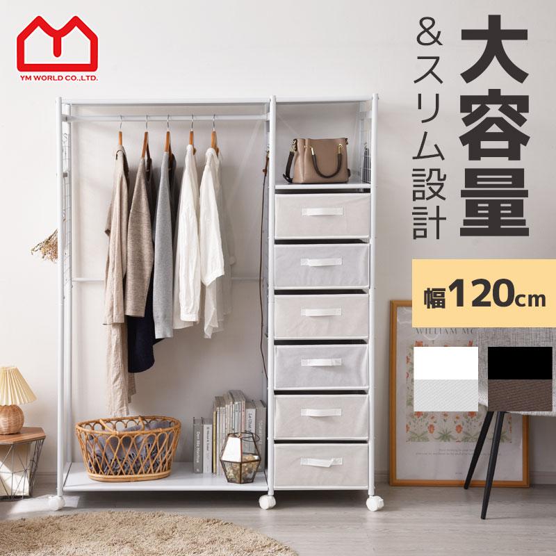 キャスター付き 引き出し ハンガーラック カナロア 幅120cm