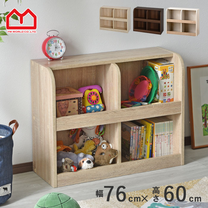 送料無料 おもちゃラック 2段 大容量 幅76cm 収納ラック 薄型 おしゃれ おもちゃ箱 絵本棚 絵本ラック 本棚 かわいい 子供収納 子ども収納 リビング収納 女の子 男の子 北欧 木目調 収納ケース 収納ボックス 収納棚 (北欧 おしゃれ 安い)