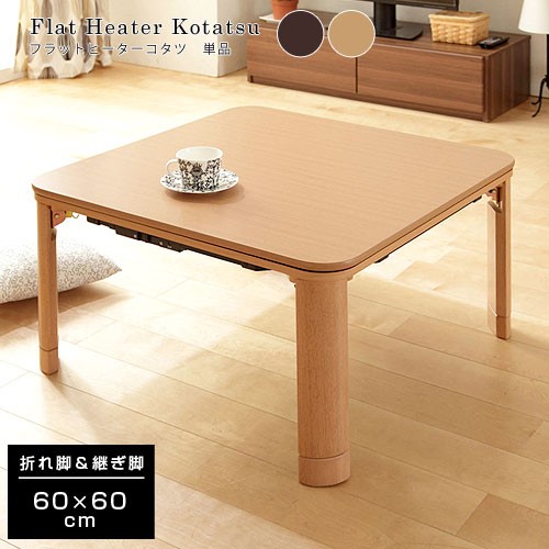 木製フラットヒーター折れ脚こたつ 60x60cm